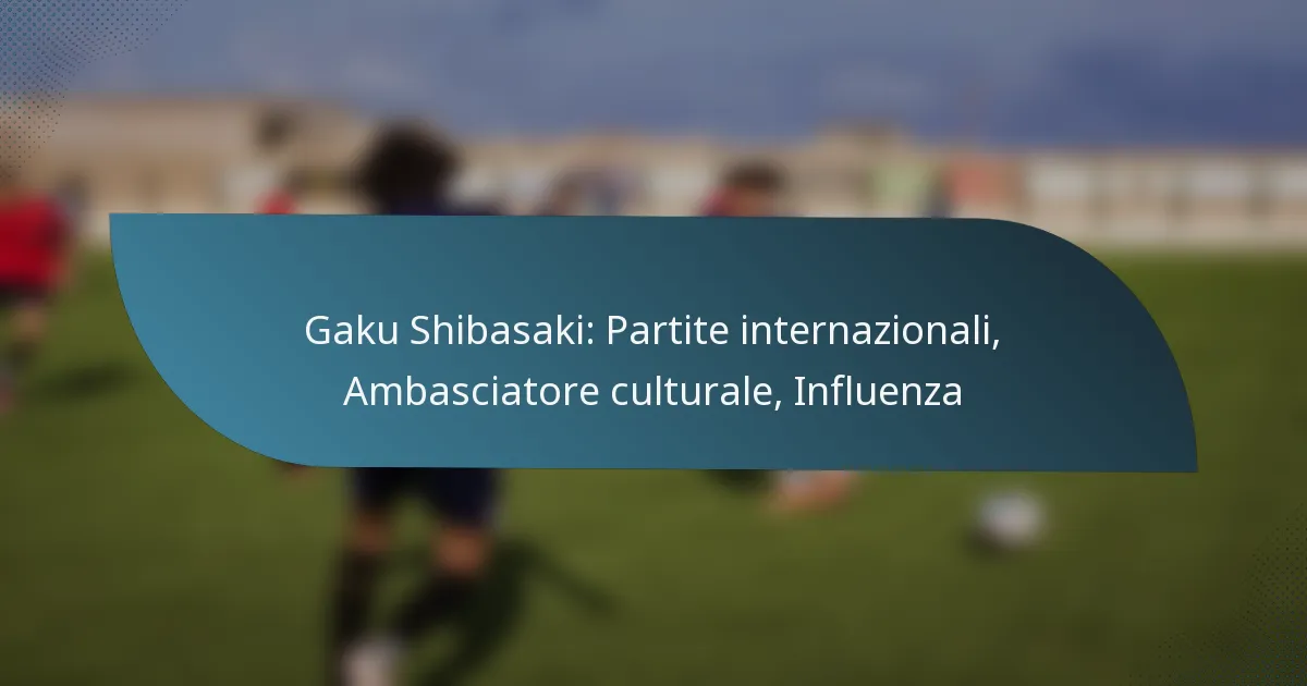 Gaku Shibasaki si è affermato come una figura centrale nel calcio giapponese, rappresentando la nazionale in numerosi incontri internazionali, inclusi tornei prestigiosi come la Coppa del Mondo. Oltre ai suoi successi atletici, funge da ambasciatore culturale, utilizzando la sua influenza per promuovere la cultura giapponese e favorire connessioni globali attraverso iniziative di outreach comunitario.
